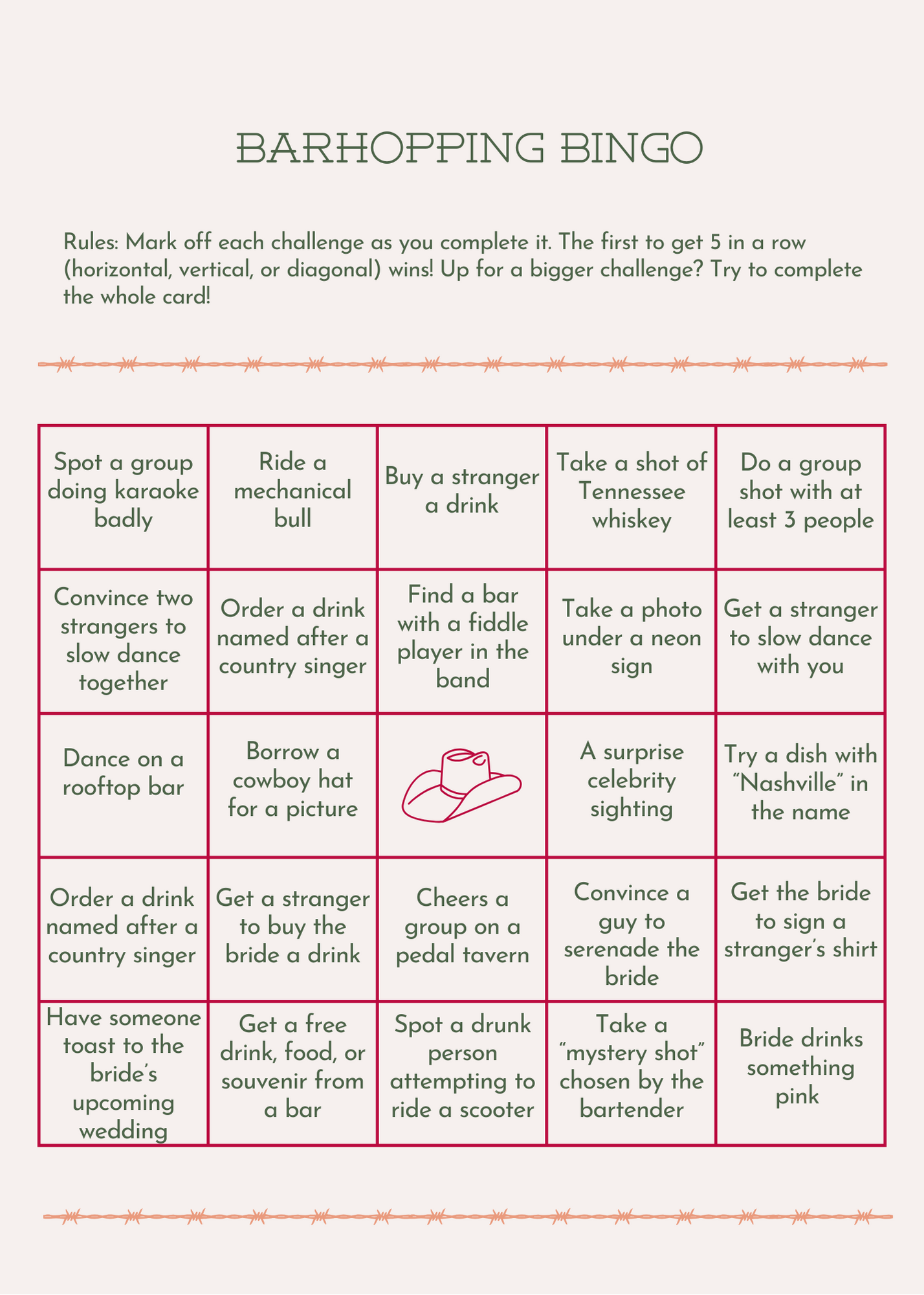 Need help planning your Nashville bachelorette weekend? Let me create a custom itinerary tailored to your group’s vibe, budget, and style! Contact me by filling out the form here to get started.